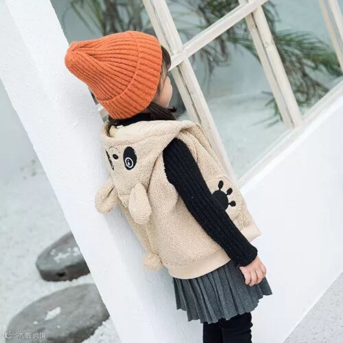 以本季国内畅销的儿童时尚泰迪绒马甲为主要分析对象,目标是国内批发市场及商超客户,整体款式以可爱、简洁、造型感以及保暖性为主,通过对面料拼接、口袋、颜色、帽子等细节的改变,增加产品的买卖性。产品图片来源于淘宝。
