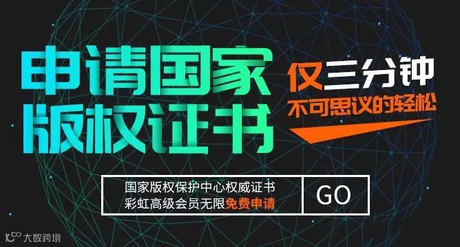 现在彩虹设计网已经上线版权保护功能!一改以往申请国家版权证书漫长而又繁琐的流程,不论是企业还是设计师,仅需要3分钟便可完成关于版权证书的提交审核。引领版权保护进入“免费!高效!便捷!”的时代。