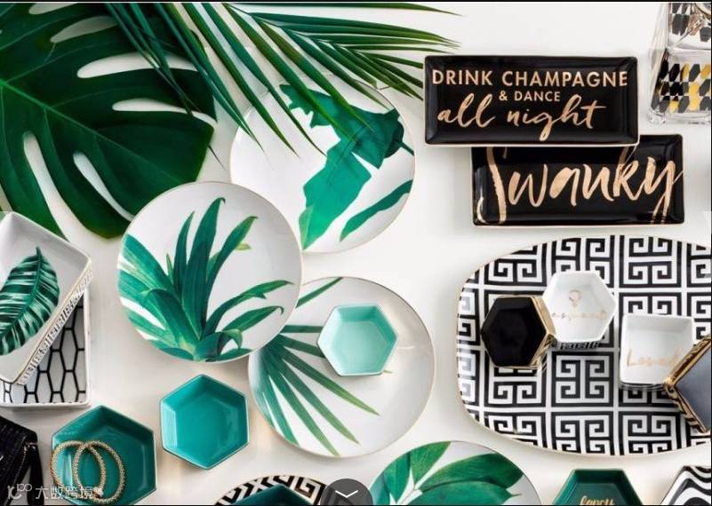 陶器的天然和触感为消费者提供机会,与更加真实的美学建立联系,因此这一趋势将在2018年继续延续。夸张的手绘美学为这些餐厨具图案增添趣味性外观。大自然元素图形推动印花和图案趋势,受自然灵感启发的图案将户外风景带至餐具,从茂密的热带雨林到娇艳的花朵图案。看似随手画的植物和花卉形状是图案致敬美学的表现。