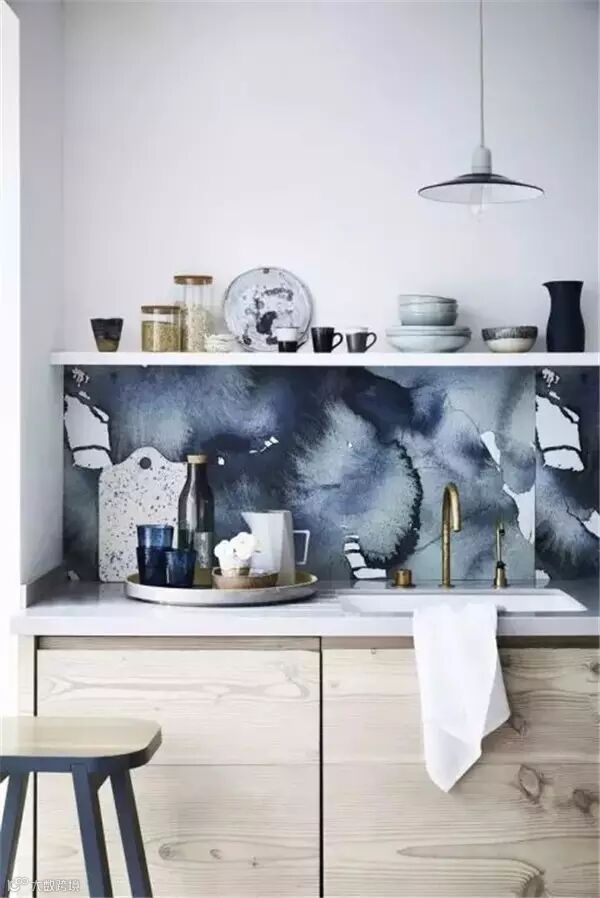 利用水彩晕染的随意性,涂抹出来的墙面会有一种流动感。
