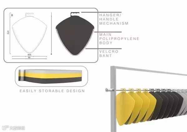 由 Orsan Berkay Tuluce 和 Buse Rodoplu 所设计,TakeAway 如同其名是一款外带用的包装产品,它结合了衣架跟购物袋的功能,兼具实用与美观,目的是为了减少购物袋及衣架的塑料材质用量,同时能够达成对环境的友善保护。