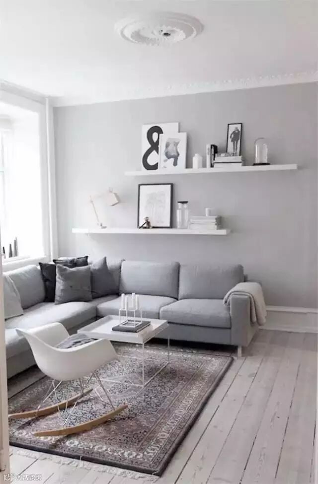 如果你实在不喜欢家中有太多颜色,灰色的搭配绝对适合你,可以通过不同层次的黑白灰来扩展整体空间。