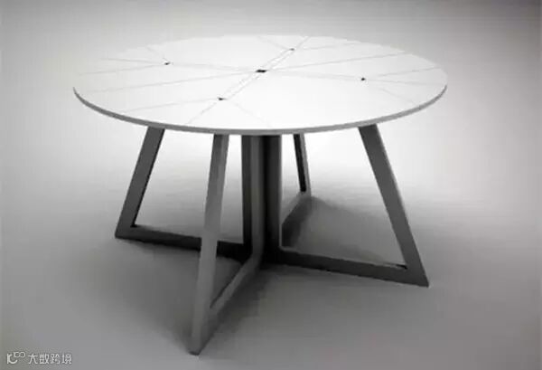 这是一款以螺旋桨和机翼为最初形状的折叠桌。两种长度的桌腿结合在一起,可以任意变换。只需抬起桌子就可以变高,成为餐桌;想要变矮,拉动桌面下的把手即可变矮,成为茶几。