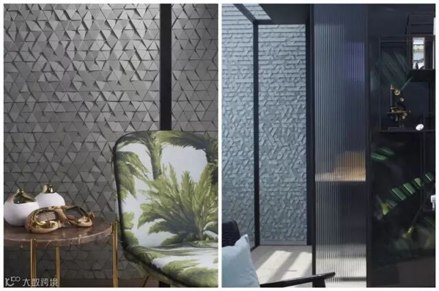 除了皮革、木材、金属板,在陶瓷的贴面运用在,这家公司的设计也有别出心裁之意,不仅可以用作空间装饰,甚至还能充当灯具的应用。