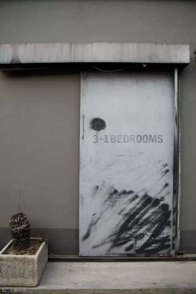 斑驳之感的水泥横梁,大面积的纯白色块,