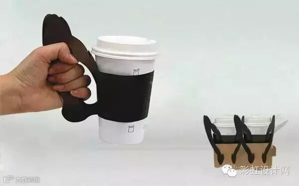 纸质咖啡套已经不是新鲜玩意,但是将把手设计成两个舒展的翅膀还是仙气十足。这个设计来自美国设计师 Seulbi Kim。