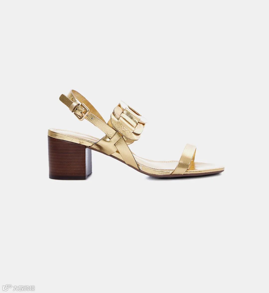 脚趾纤细绑带勾勒轻盈姿态,脚背宽幅编织搭配金色金属饰件,尽显优雅格调。侧边金属扣与鞋跟绑带设计,提升利落质感,行走间自带精致气场。