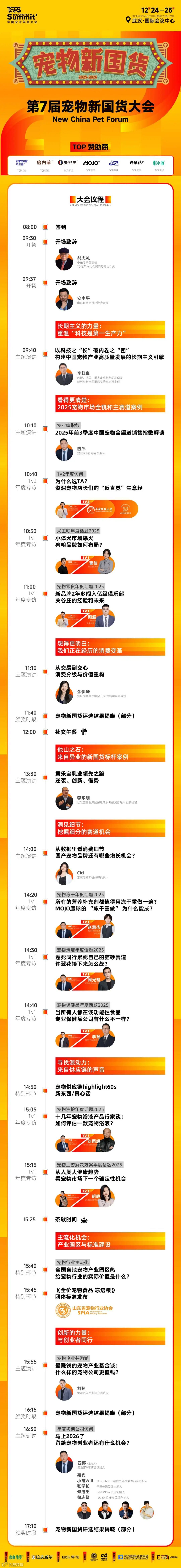 作为中国宠业年度大会的核心主会议之一,第七届宠物新国货大会定于12月24日举办。大会以“中场已至,下半场何往?”为主题,聚焦国货品牌发展关键阶段:从早期消费者偏好进口,到如今国产品牌全面主导主流渠道,市场格局深刻重塑。面对上半场增长红利减弱,大会旨在引导企业复盘路径、厘清趋势、锚定差异化竞争方向 [2] 。