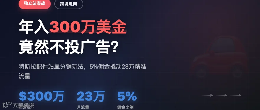本文案例——Teslaunch(专注特斯拉配件的独立站),年营收达300万美元,单品售价39–179美元,其成功关键并非依赖付费广告,而在于精准策略与可持续增长模式。