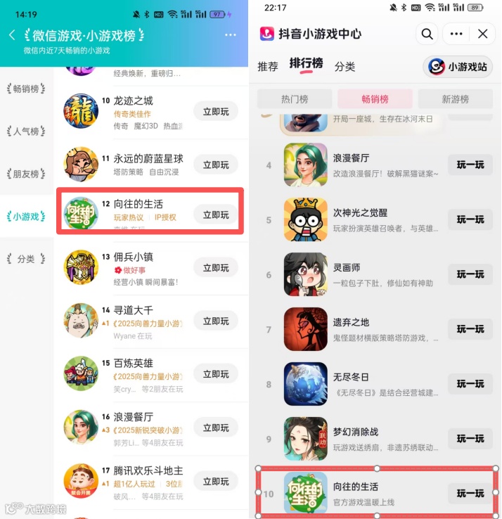合成类与模拟经营本就处在小游戏生态的高速增长赛道,目标清晰、反馈及时的操作模型与《向往的生活》的治愈基调天然契合,从品类层面减少了玩家的认知摩擦。