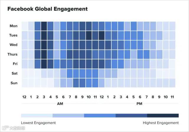 抓住用户活跃高峰期,是贴文变现的关键因素之一。给大家看下Facebook Global Engagement数据表。