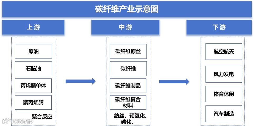 按照丝束的数量将碳纤维分为大丝束和小丝束,广泛应用于航空航天、体育休闲、能源装备、交通运输等领域。2024年中国碳纤维主要应用在风电叶片(占比37.96%)、体育休闲(占比23.26%)、碳碳复材(占比10.69%)、压力容器(占比8.37%)、航空航天(占比7%)。