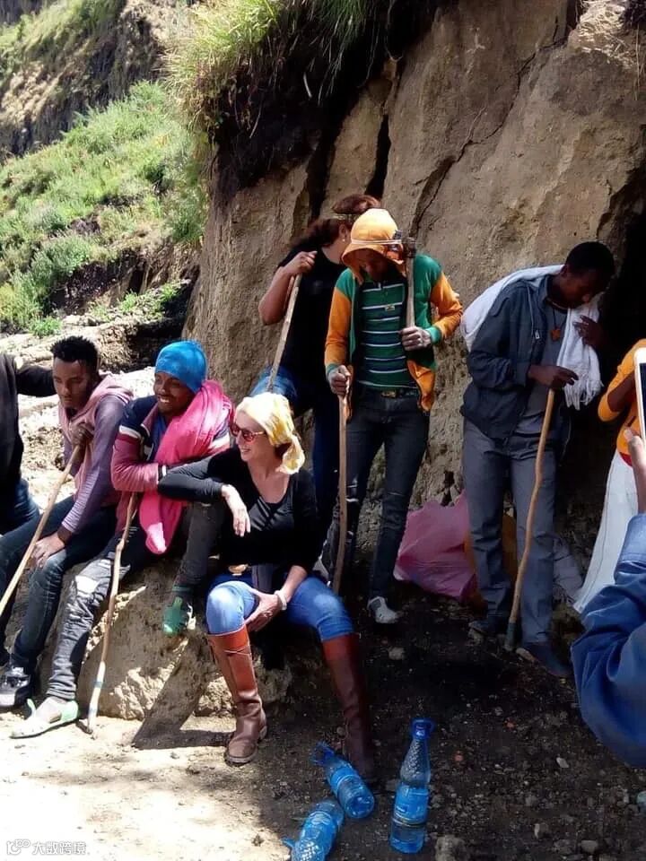 在埃塞俄比亚,与矿工们在一个欧泊矿外