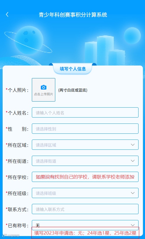 填写2023年申请的时候请选“无”;填写2024年申请选1星,填写2025年申请选2星,以此类推