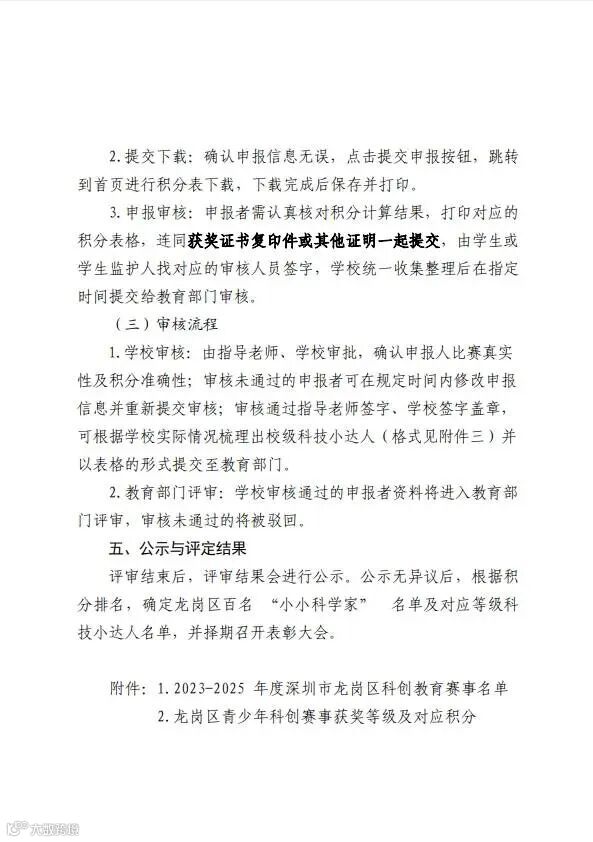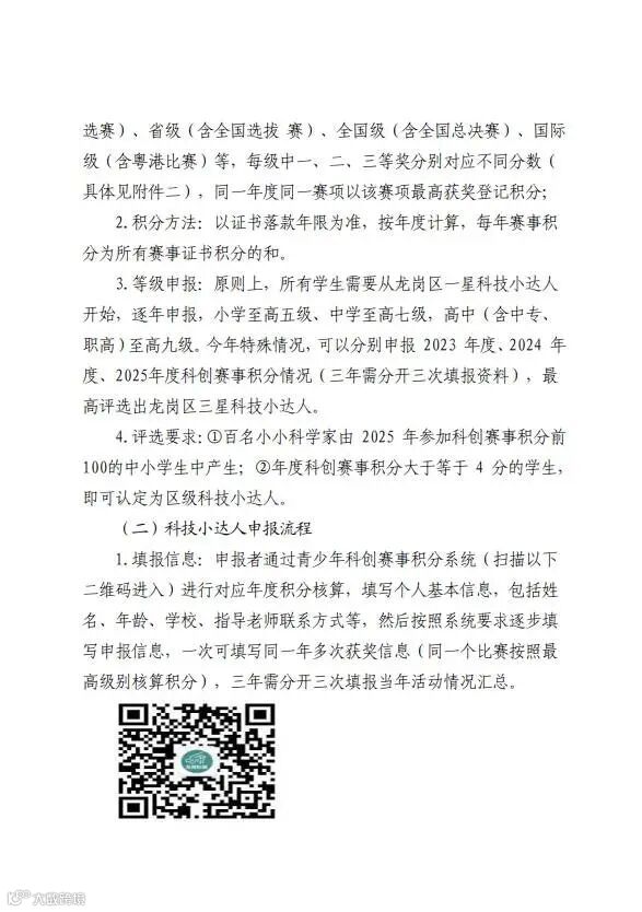 - 附件二:龙岗区青少年科创赛事获奖等级及对应积分