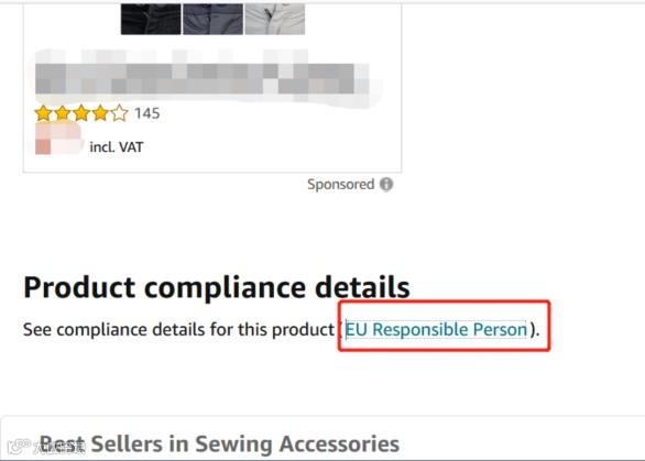 成功上传负责人后,点击商品详情页面的商品合规性详情部分下的欧盟负责人(EU Responsible Person),上传的信息将显示在弹出窗口中。