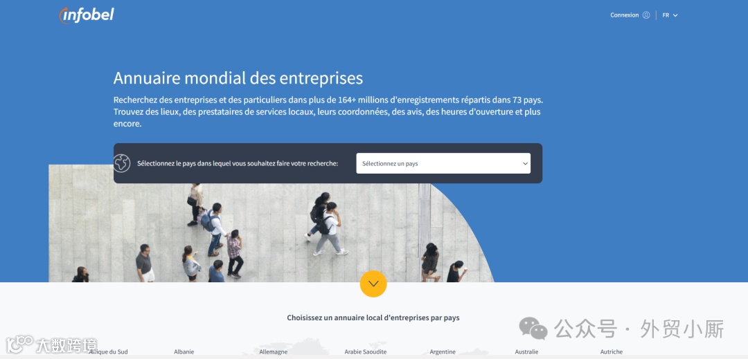 Infobel(https://www.infobel.com)是全球领先的在线企业名录平台,覆盖各行业公司信息。用户可通过该平台获取基础信息、联系人详情,并按行业、地域、公司规模筛选潜在客户,助力外贸业务拓展。