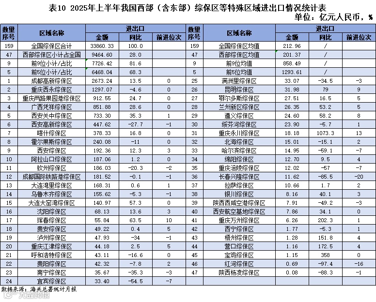 2025年上半年我国中部、西部及东北地区综保区与保税物流中心进出口情况分析