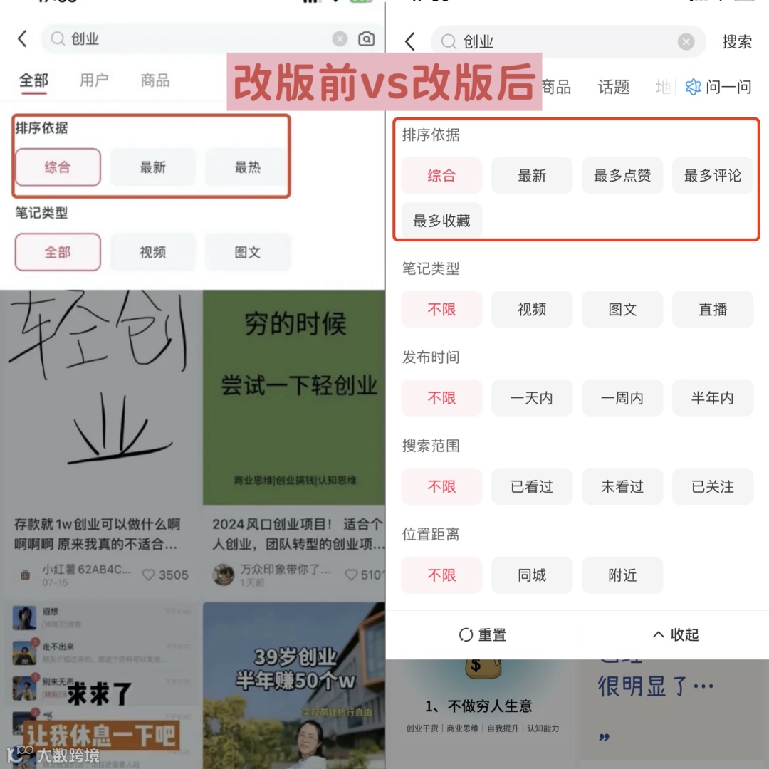 - 小红书搜索页已新增“最多点赞”“最多评论”“最多收藏”筛选项,互动率权重持续提升
