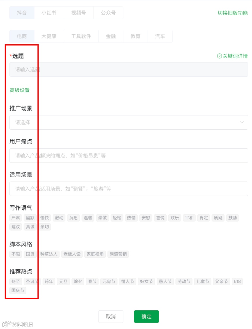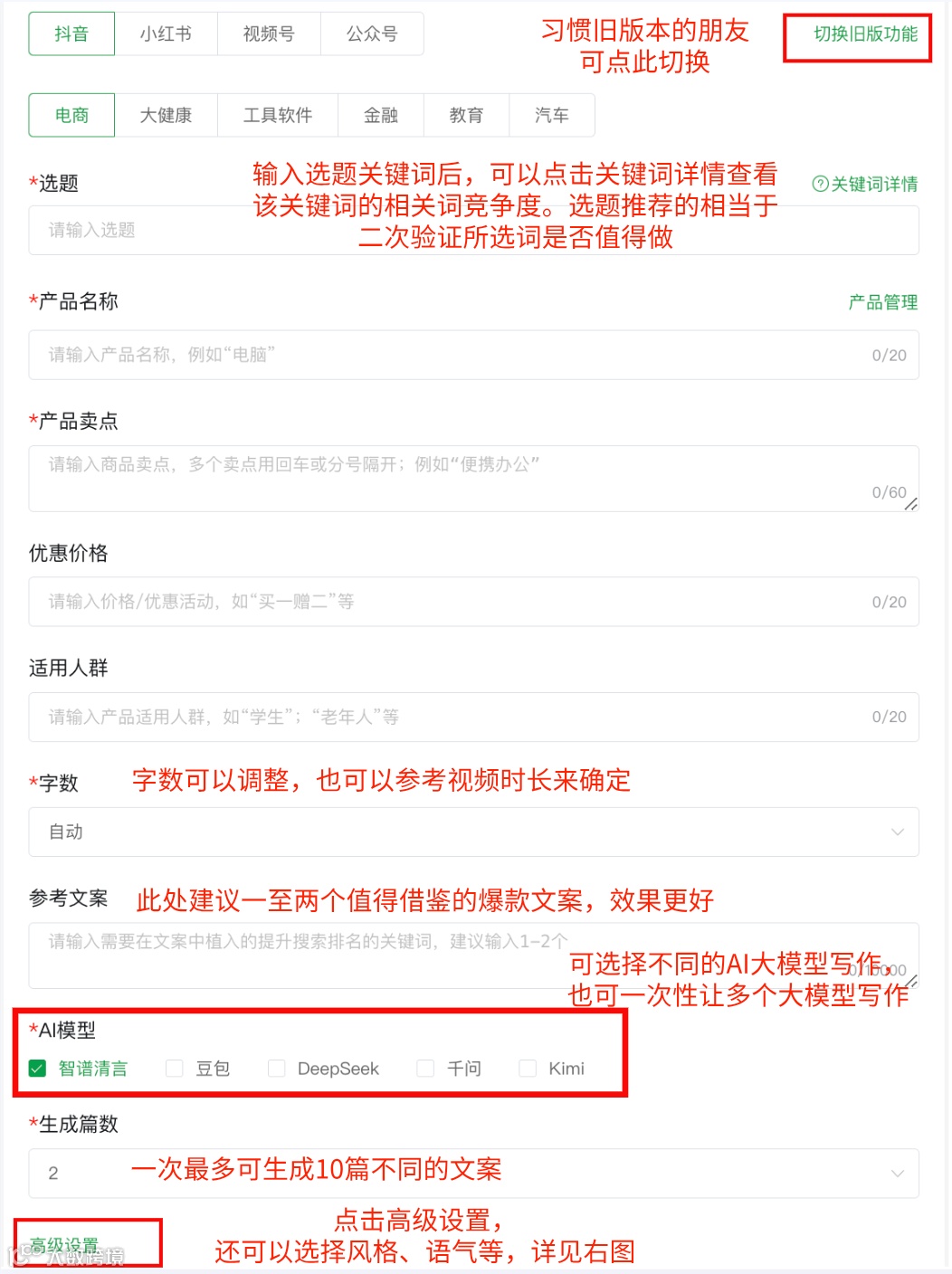 - 无参考内容时,可直接使用“AI写文案”功能生成
