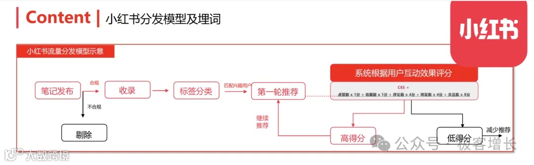 小红书笔记发布后,系统先打标签并进行初步推荐,再根据用户互动行为评分,高分内容持续放大曝光。