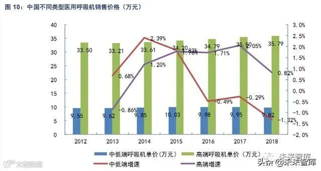 自 2012 年到 2018 年,高端呼吸机平均价格呈现缓慢上涨的趋势,但低端产品受技术的同质化与竞争格 局恶化的影响,价格逐渐下滑。高品质的品牌将享有更多的价格优势。
