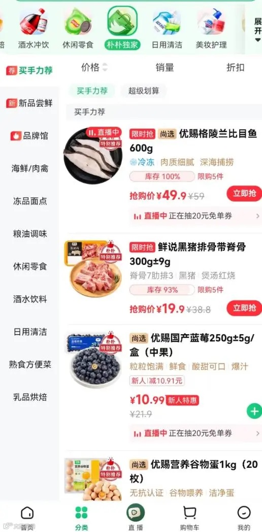 近期,朴朴超市在APP上线“朴朴独家”频道,正式加码自有品牌。产品覆盖海鲜肉禽、粮油调味、休闲零食、日用清洁等多个品类,标志着其从即时配送平台向品牌化运营迈进的关键一步。