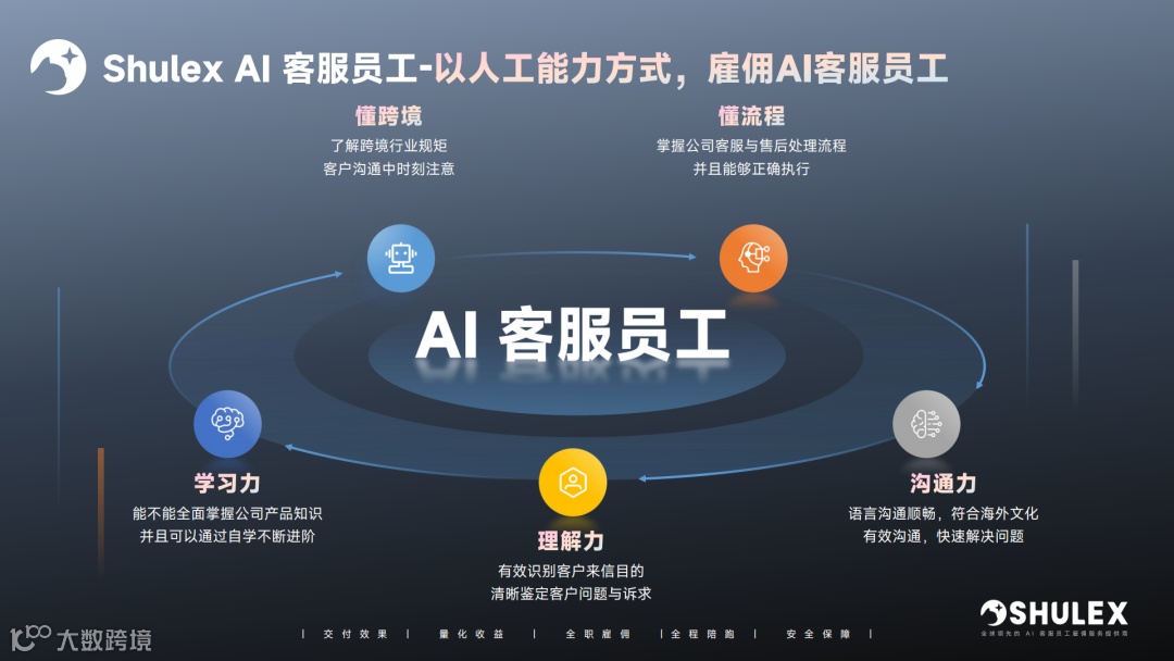 作为全球领先的跨境电商AI客服服务提供商,Shulex首创“交付效果、量化收益”的透明商业模式,承诺保障至少30% AI回复率、80%回复准确率,确保企业获得可衡量的投入回报。