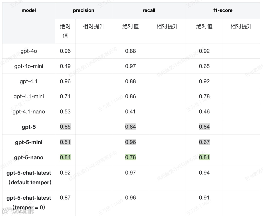 测试采用precision、recall和F1-score三项指标,结果显示:Shulex SC在红线识别任务中综合得分领先,展现出更高的稳定性和准确性。GPT-5系列需根据场景选择使用——gpt-5适用于高要求核心场景,而gpt-5-nano和gpt-5-mini更适合轻量级信息初筛。