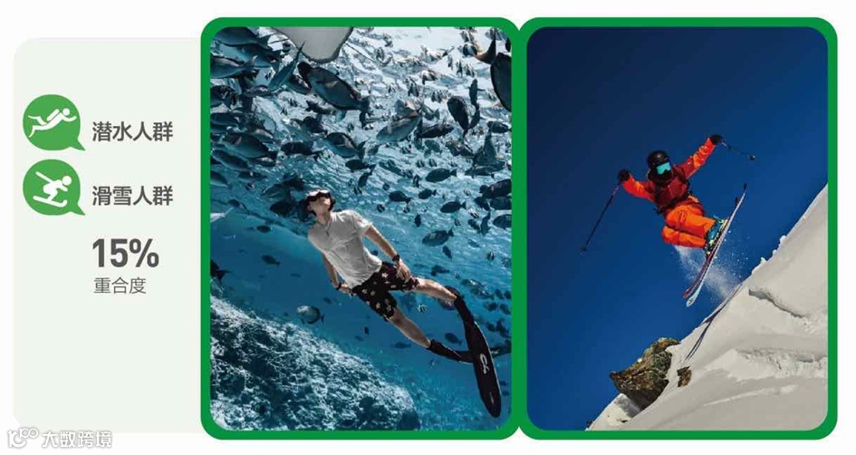 用户身份呈现流动性与复合性。“蓝白双修”(夏天冲浪、冬天滑雪)成为典型标签,相关笔记曝光量达2500万。运动场景打破空间限制,融合城市与自然、室内与户外,满足多重身份切换与全时段运动需求。