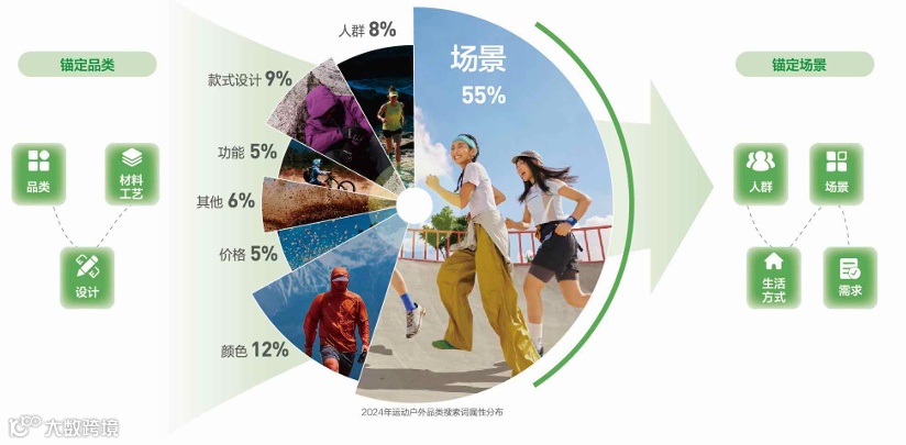 品牌可通过“大单品—1+N品类扩张—产品矩阵”三级链路实现场景占位。数据显示,42%的场景搜索直接指向具体产品。如徒步场景中,“HOKA KAHA徒步鞋”“迪卡侬MH500”等大单品位居下游搜索前列。