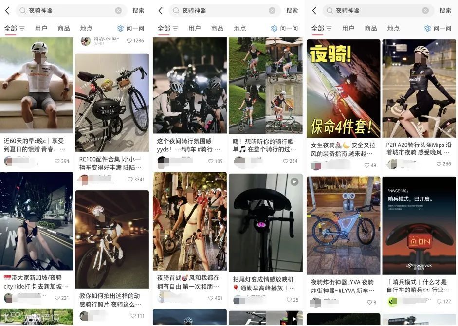 在小红书上搜索“夜骑神器”能得到丰富推荐