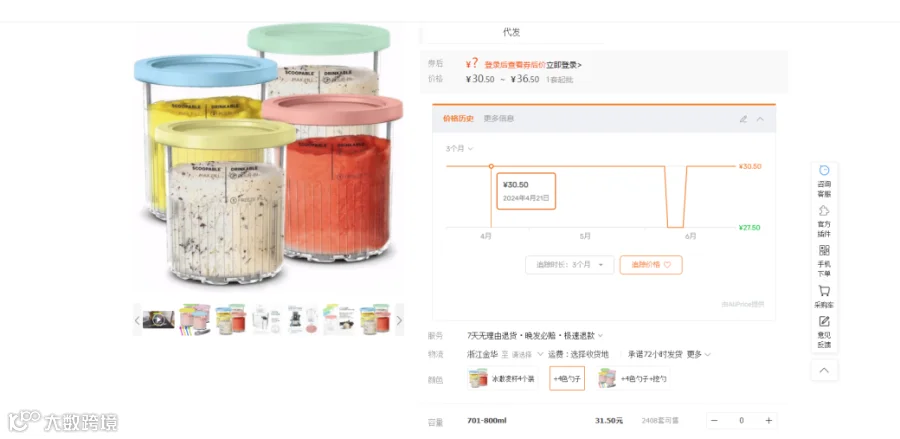 采购:国内1688工厂价30.5元一个