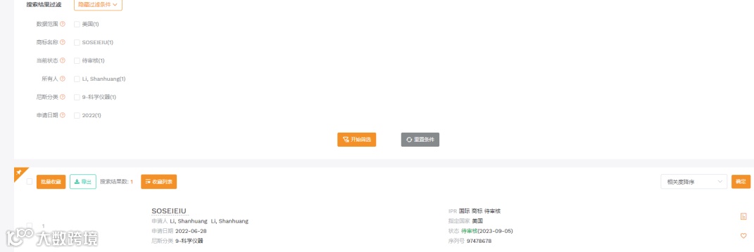 商标查询(来源于卖家精灵)