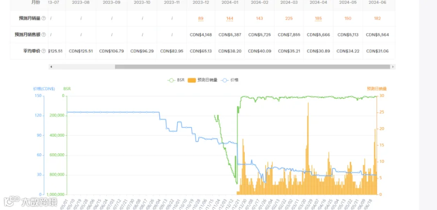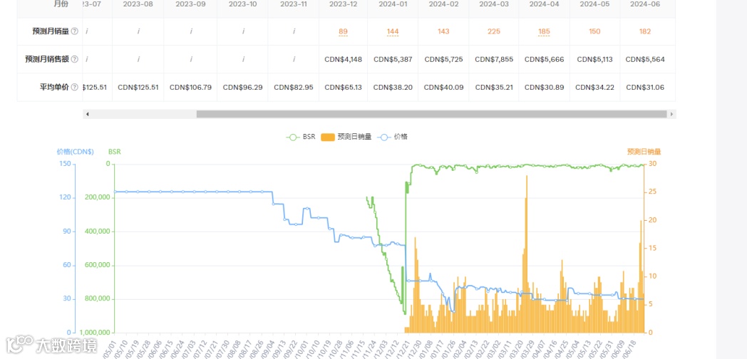 卖家精灵中可以看出,此产品从上架开始销量都不断的往上增加。这类的产品一年四季都可以售卖,不受季节性的影响