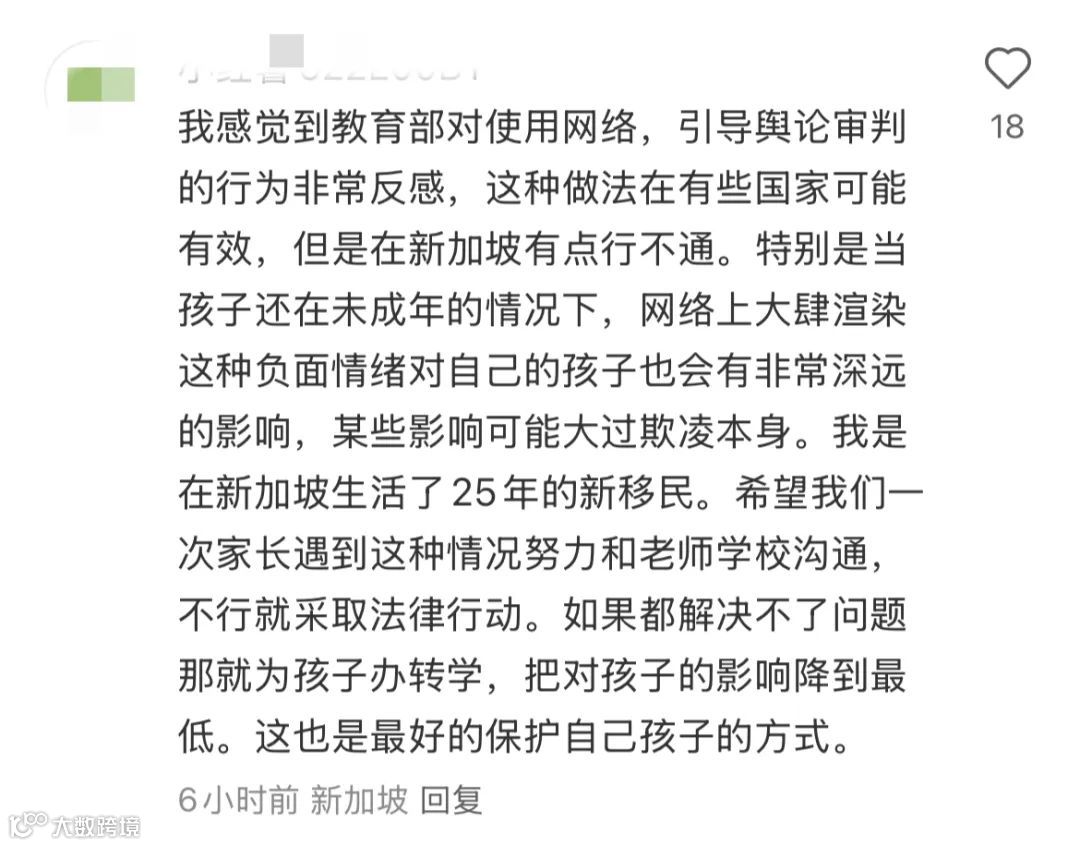 正如这位网友所说,新加坡教育部其实也是在呼吁家长们保持冷静、理性沟通,尽量和学校配合,共同为孩子创造一个更好的成长环境。
