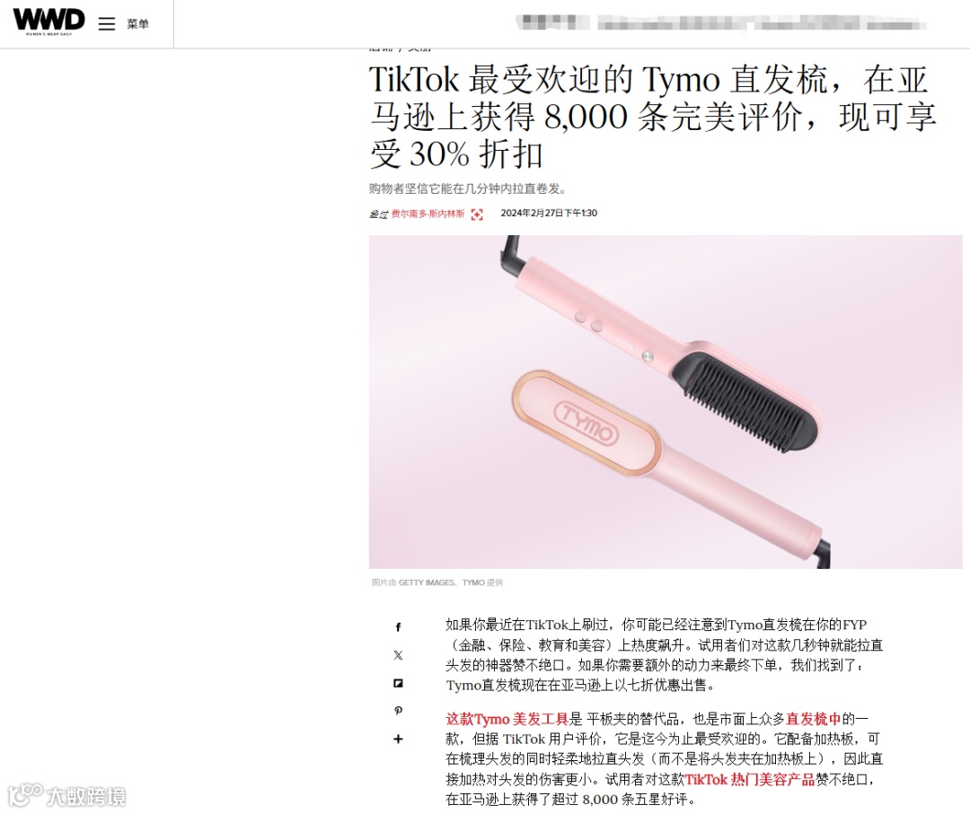 TYMO BEAUTY将用户真实评价转化为品牌资产。权威时尚媒体WWD引用其在亚马逊长期积累的“快速直发”“低损伤”等正面反馈,显著提升品牌可信度。