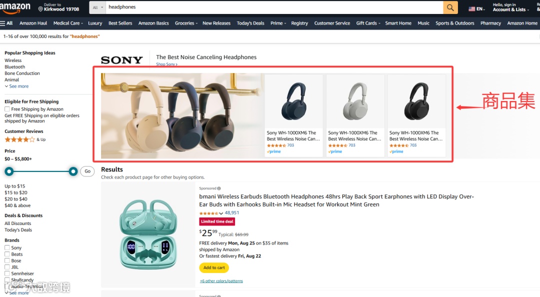 - 搜索结果顶部(Top of Search, TOS):首页前4个带“Sponsored”标识的广告位。