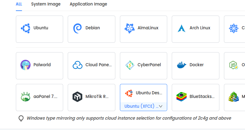 可以选择的操作系统挺多的,包括常见的 Ubuntu,Debian,CentOS,Windows,Docker等,小众的 macOS 系统都有,还可以一键安装宝塔(bt)面板,方便操作和管理VPS。