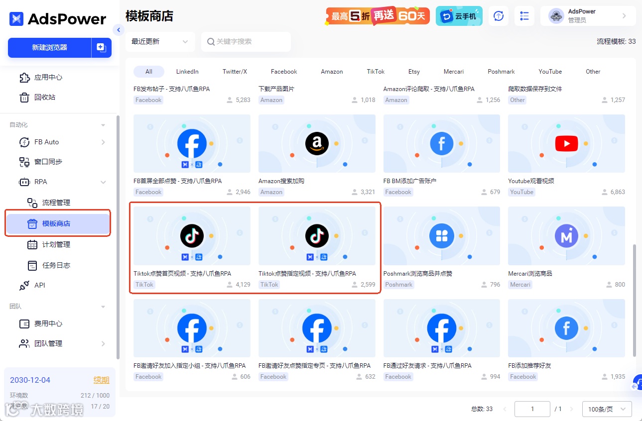 批量创建与管理账号:AdsPower 支持批量管理 抖音 等社媒账号,拥有免费 RPA、窗口同步、本地 API 等功能,能够一键批量登录账号,并实现自动养号,大大节省了人力和时间成本。
