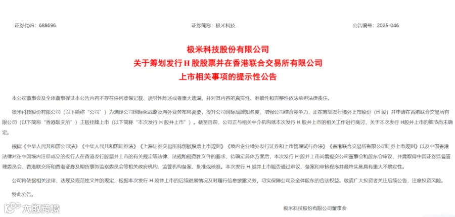 近期,极米科技还透露正在筹划发行境外上市股份(H 股)并申请在香港联交所主板挂牌上市。