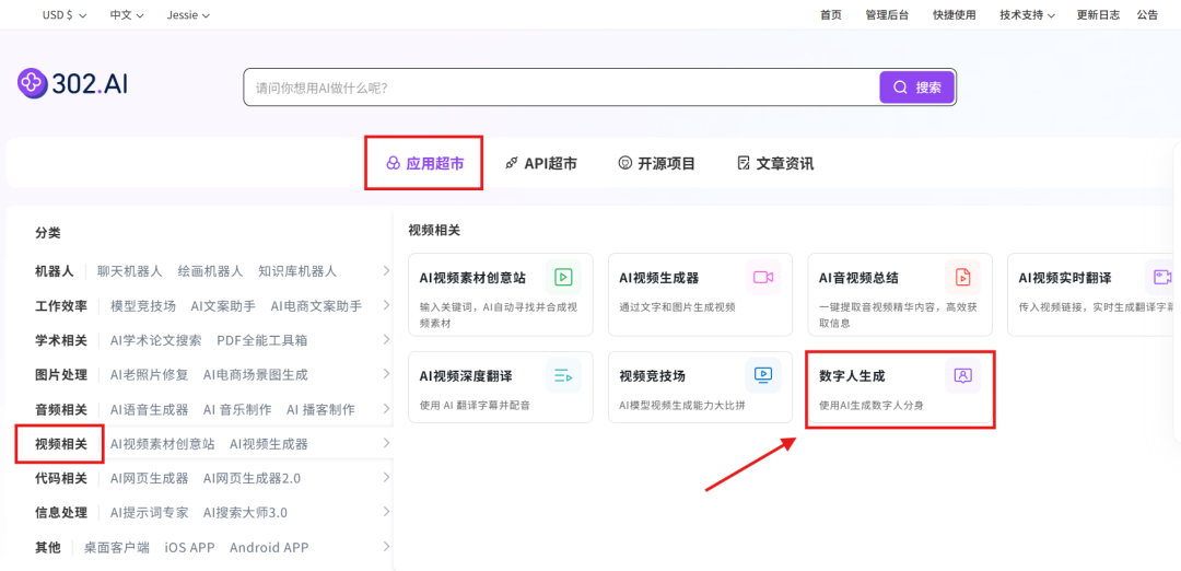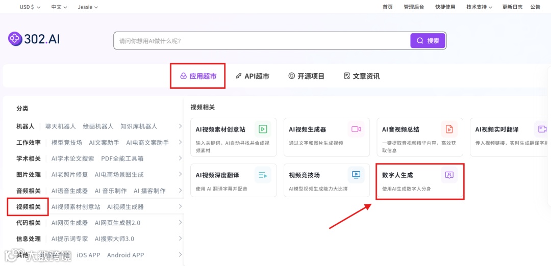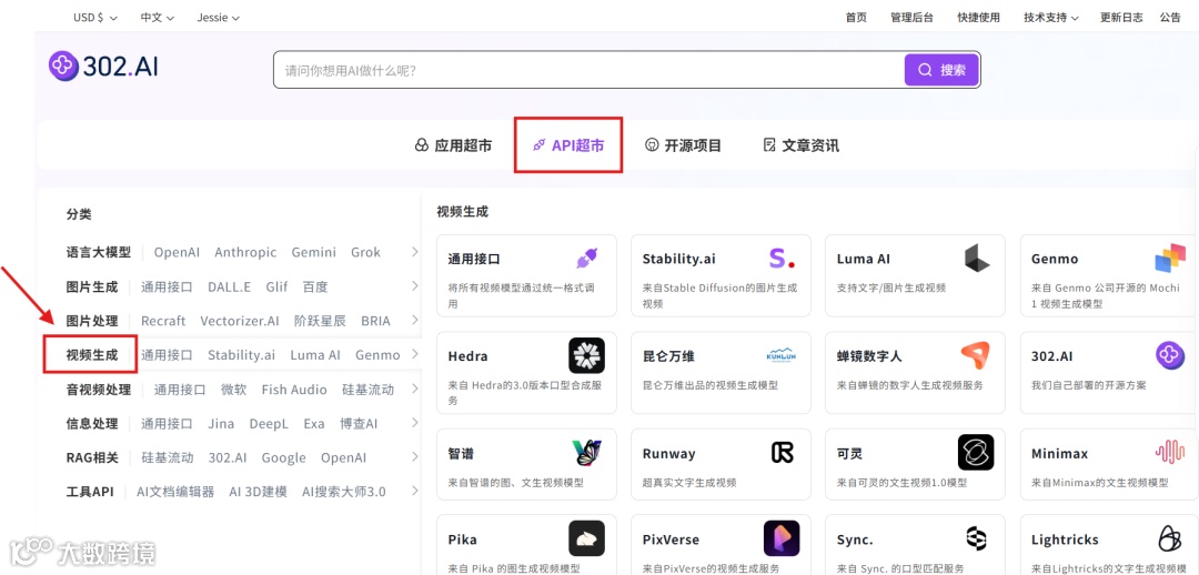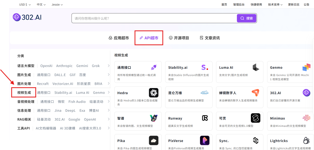 用户可在 302.AI 的 API 超市快速接入相关数字人模型的 API,并能够根据特定项目需求进行定制化开发。