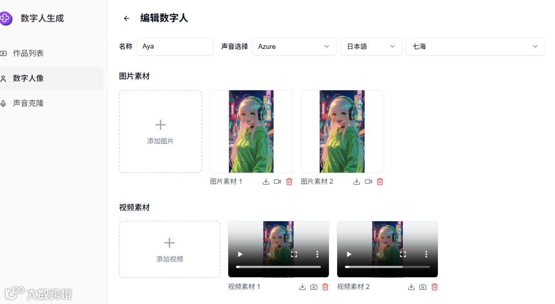 (4)管理数字人素材