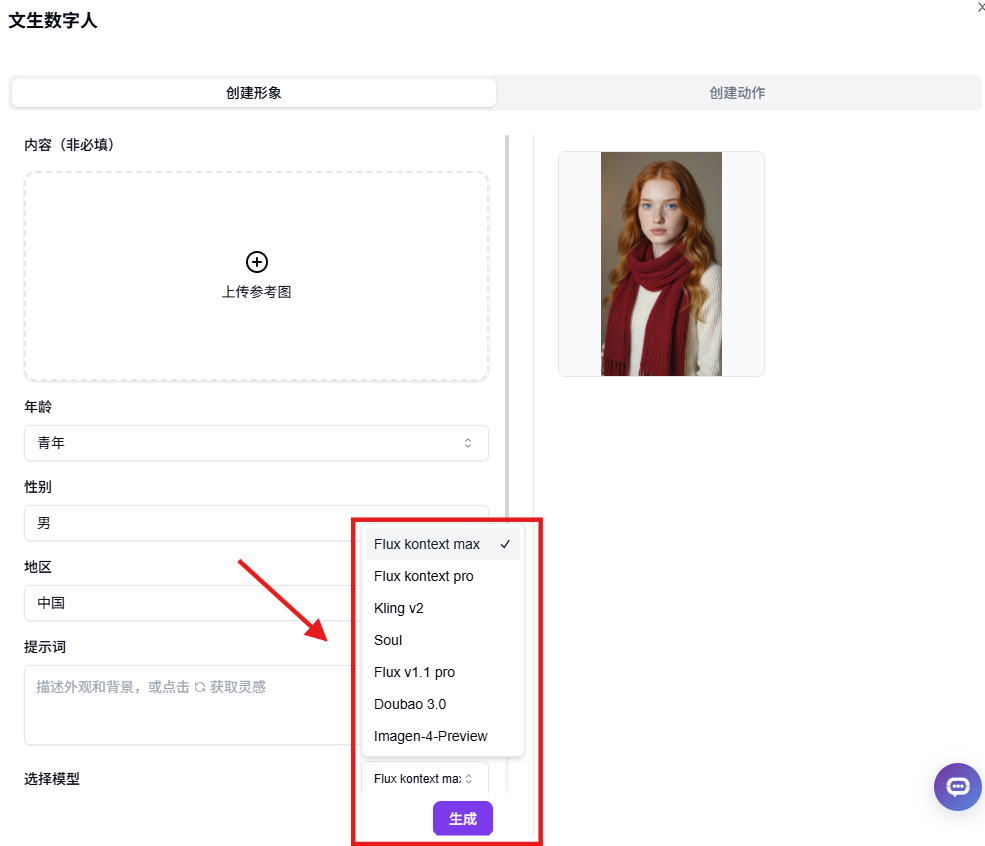 使用 Flux kontext pro 生成数字人形象,OmniHuman 生成数字人视频。