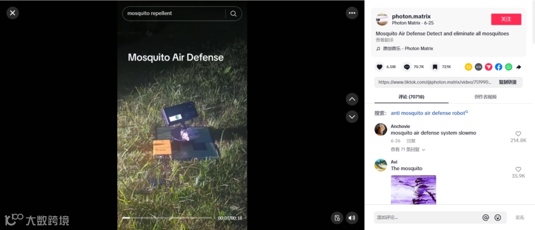 2025年6月至7月,Photon Matrix测试视频在TikTok、YouTube等平台病毒式传播,单条视频播放量达7480万,点赞超650万。强烈的视觉冲击——激光瞬间击落空中蚊子——完美契合短视频“黄金三秒”法则,迅速引发全球关注。