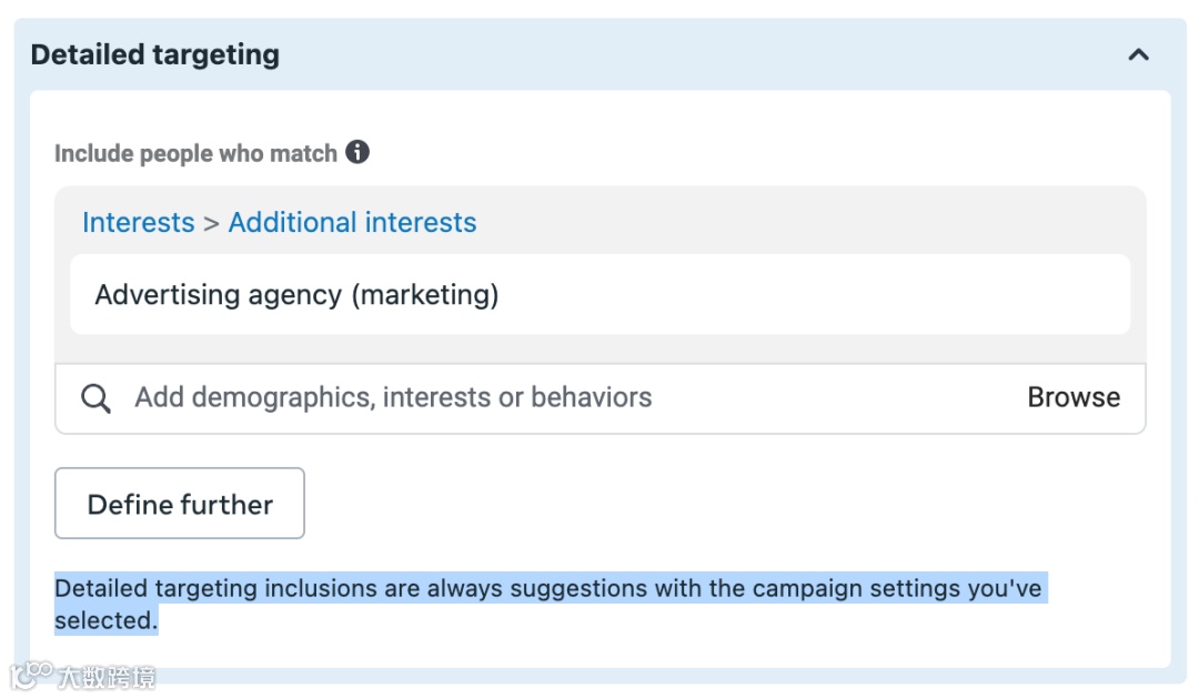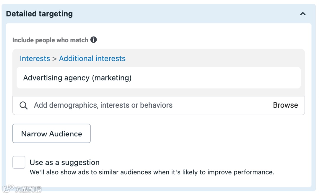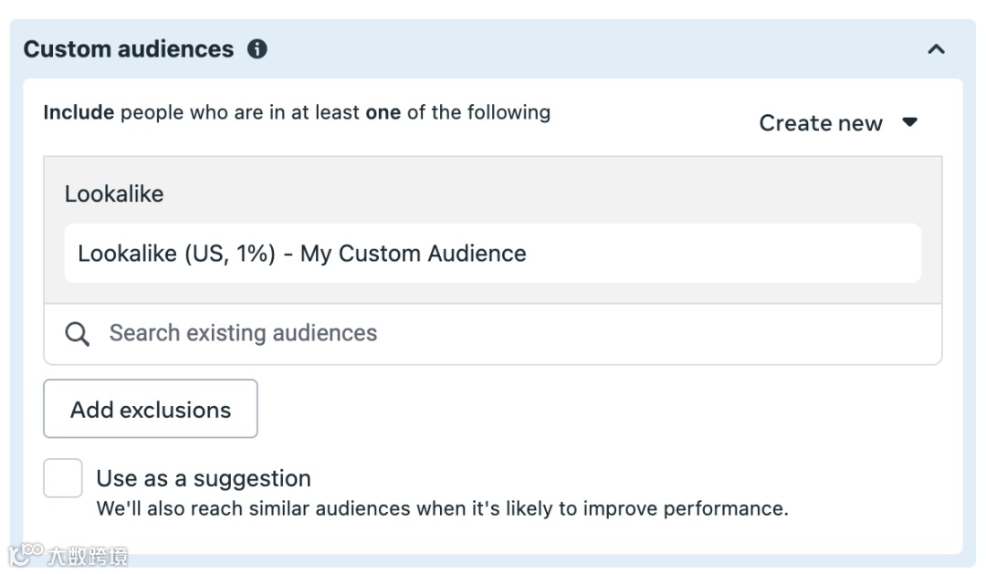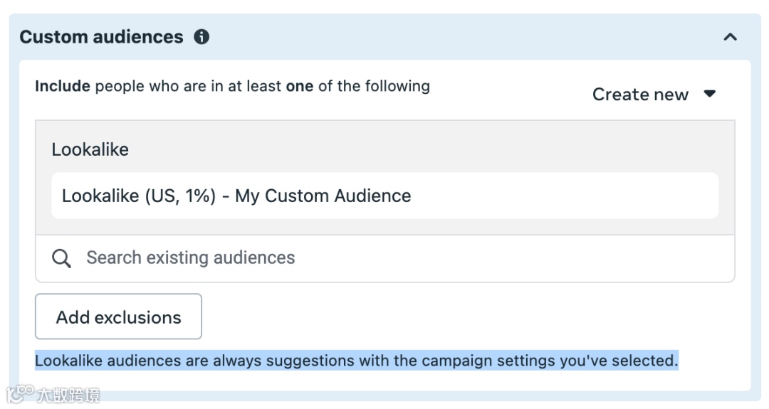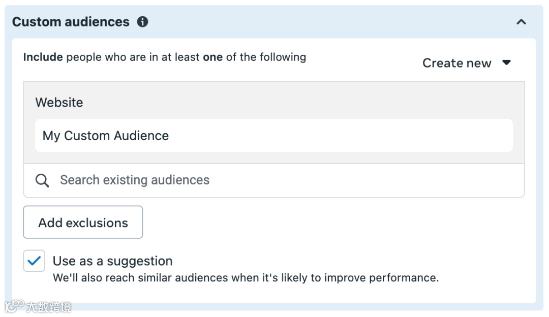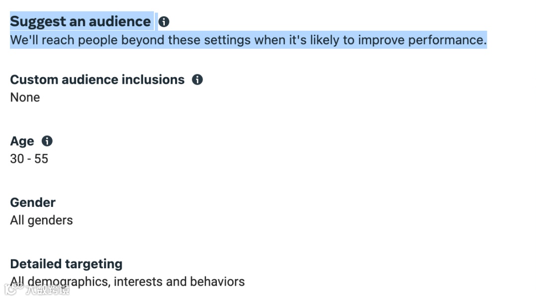 新设置:自定义受众默认为建议。通过调整设置并取消勾选,可转为严格控制。