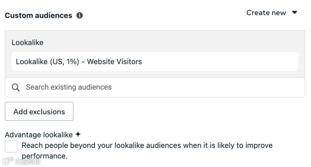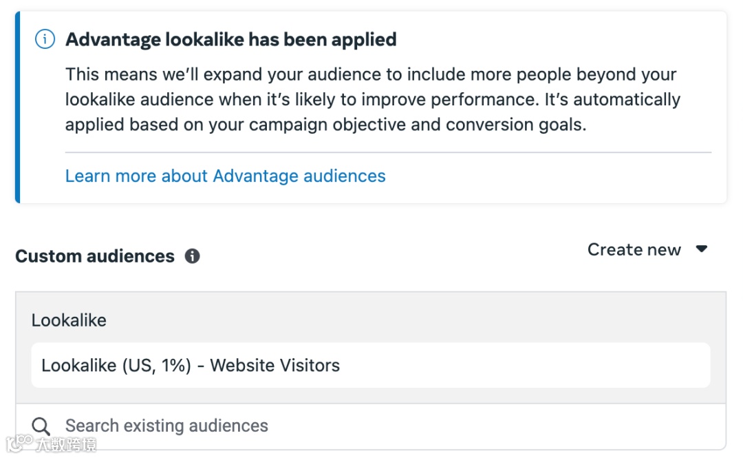 旧设置:使用“Advantage+受众”时,相似受众为建议。切换至原始受众后,控制权取决于绩效目标。若为“最大化转化数量/价值”,Advantage Lookalike自动启用且不可关闭;其他目标可手动关闭,实现严格控制。