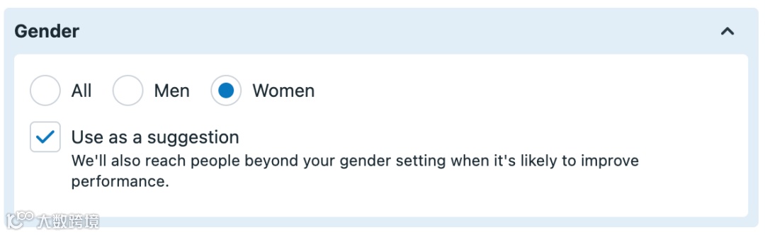 旧设置:默认性别为建议项,Meta可自主投放。切换至原始受众后,性别变为控制项。