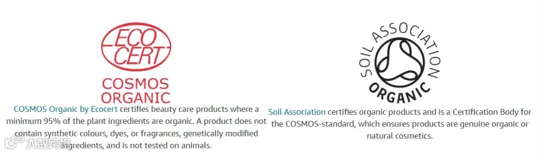 COSMOS 有机(COSMOS ORGANIC):符合全项标准,且有机成分占比达标。