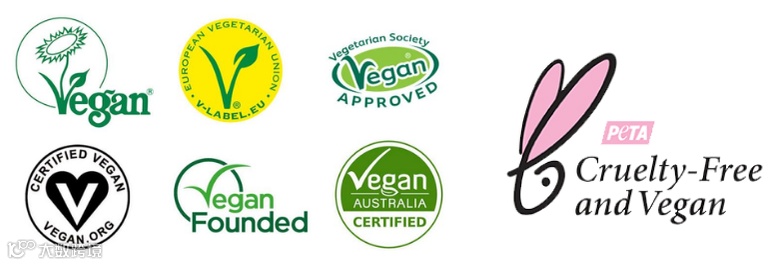 2、认证特点:无全球统一标准,头部机构标识具高认可度,包括英国 The Vegan Society、美国 Vegan Action、欧洲 V-Label 及 PETA(同步提供 Vegan 认证)。
